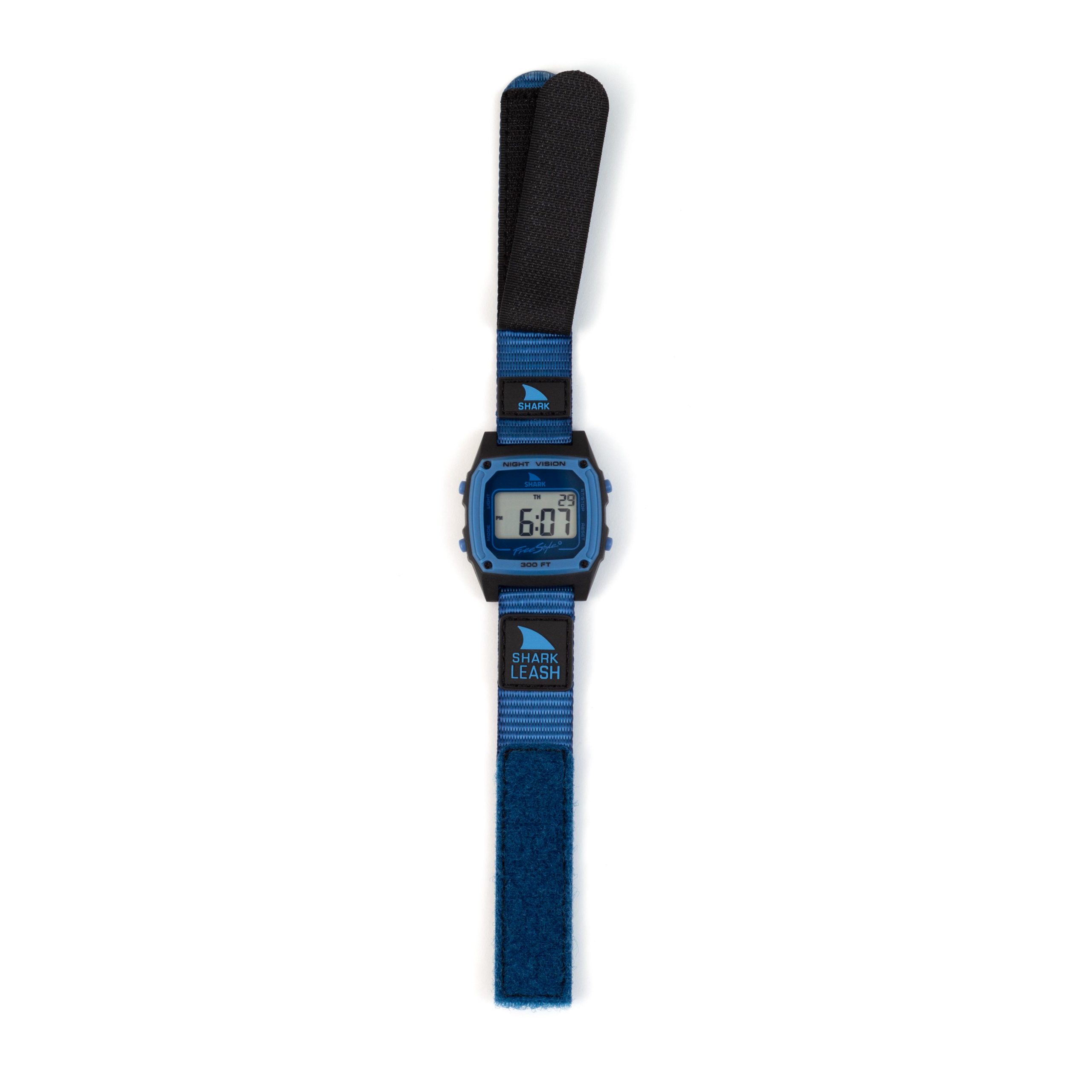 New & Improved! The original Velcro band that ignited Freestyle Watches in the late 80’s is back and better than ever. The shark leash’s velcro closure system is modeled after an 80’s style surfboard leash, and is ready to get radical. The Shark Leash comes loaded with standard digital features like time, date, stopwatch, countdown timer, alarm and night vision backlight. Like all Freestyle Watches, The Shark Leash is water resistant to 100 Meters and backed by our limited lifetime warranty. Shark to the Future!
